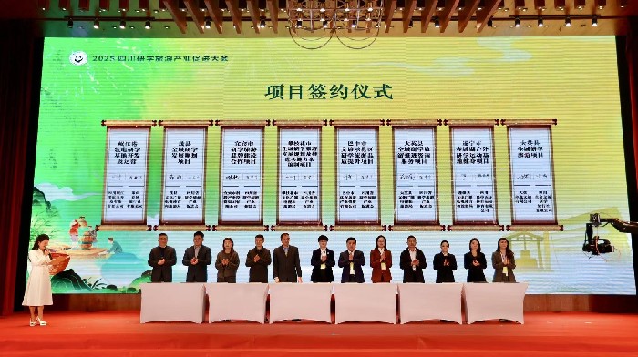 活动现场,遂宁、攀枝花、宜宾等多地文旅部门与参会企业就研学基地运营、资源协同开发等领域达成多个合作并签约。此外,来自全省的12家核心文旅协会联合发布《四川省旅游行业两新组织党建共建深度研学游遂宁倡议》,为研学旅游规范发展提供保障。
