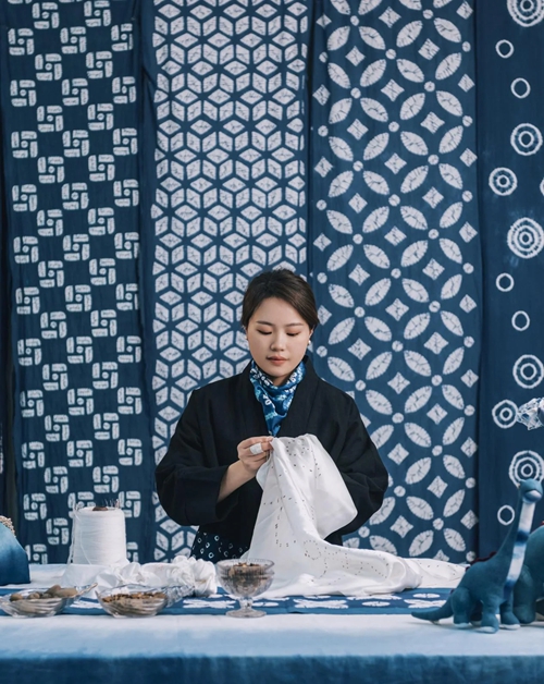 作为“蜀颉扎染”如今的掌舵人,曹东琼的传承之路始于2016年。她师从四川省工艺美术大师、自贡扎染省级代表性传承人常丽先。而常丽先的技艺,则承袭自国家级代表性传承人张晓平及设计大师李五中。正是这样一代代“以匠心守护薪火”的传承,为曹东琼奠定了坚实的技艺根基。