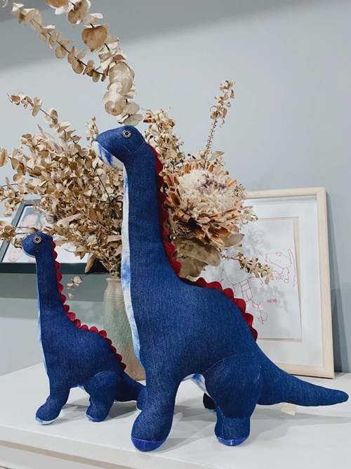 更重要的是“引进来”,与在地旅游深度绑定。在自贡,曹东琼团队积极探索“非遗+旅游”的融合路径。他们不仅在自贡方特恐龙王国、中华彩灯大世界等热门景区设立旗舰店,让游客轻松接触扎染文化,更推出了深受欢迎的扎染DIY体验项目。他们甚至与自贡灯会合作,打造“扎染花灯展”,形成“昼赏扎染·夜观灯影”的特色文旅体验;与恐龙博物馆、燊海井、盐业历史博物馆、方特恐龙王国、尖山风景区等景区景点联名开发主题玩偶系列,进一步吸引年轻客群。