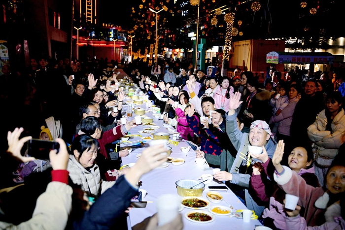 12月20日晚,雅安市名山区甘露坊特色街区灯火璀璨、人流如织。以“蜀里安逸·雅至生活”为主题的雅安秋冬季促消费活动暨名山区2025年冬日暖“羊”促消费活动正式启动,同期举办的“甘露坊非遗之夜”集中展现雅安各地传统文化魅力,为冬季消费市场注入新活力。