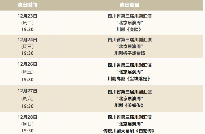 四川省第三届川剧汇演“北京展演周”排期。来自梅兰芳大剧院