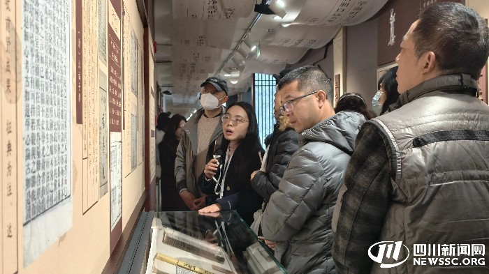 为拉近古籍与公众的距离,展览采用了丰富的辅助手段。图文并茂的解说、重点展品的放大细节呈现,都降低了观赏门槛。开展当日,策展人、成都图书馆古籍部主任肖娇娇博士主持的专场导览,更是为三十位深度爱好者提供了一把“解码”的钥匙,通过专业讲解,专业的学术知识变得易于理解,兼顾了展览的专业性与普及性。