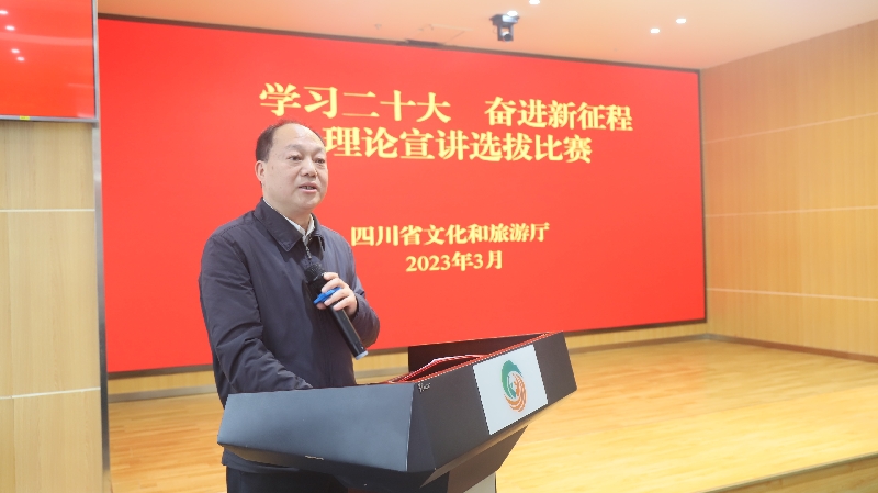 为学习贯彻党的二十大和省委十二届二次全会精神,3月29日,文化和旅游厅举办“学习二十大 奋进新征程”理论宣讲比赛。厅党组成员、机关党委书记杨红梅,厅二级巡视员张珂、王燕林、羽欣出席,邀请省委党校教授严红、陈仲莅临现场指导,比赛由天府旅游名导卫美佑主持,省文物局,厅机关各处(室、局)及直属各单位100余人现场观看比赛。