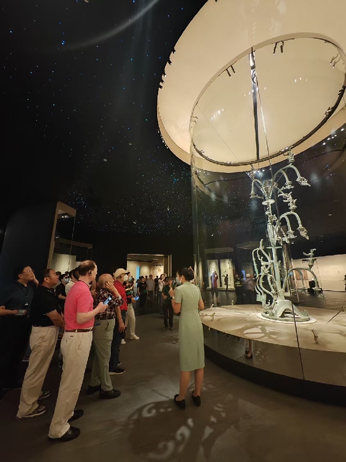 9月13日上午,离退休老同志来到三星堆博物馆新馆参观。在“世纪逐梦”、“巍然王都”、“天地人神”等展厅中,老同志们驻足于青铜神树、青铜大立人以及2022年新出土修复的青铜神坛、青铜顶尊人像等文物前,仔细听取三星堆遗址发掘历程和古蜀文明研究成果介绍。在文物修复馆,老同志们近距离了解出土文物修复过程细节。老同志们表示,三星堆博物馆新馆在暑期“火爆出圈”、“一票难求”,这次能到新馆参观到最新考古成果,了解古蜀文明研究最新成果,感到非常高兴,大有收获。通过实地参观,感受到了古蜀文明的瑰丽神奇、异彩缤纷,也感受到了省委省政府对文化和旅游工作的高度重视。